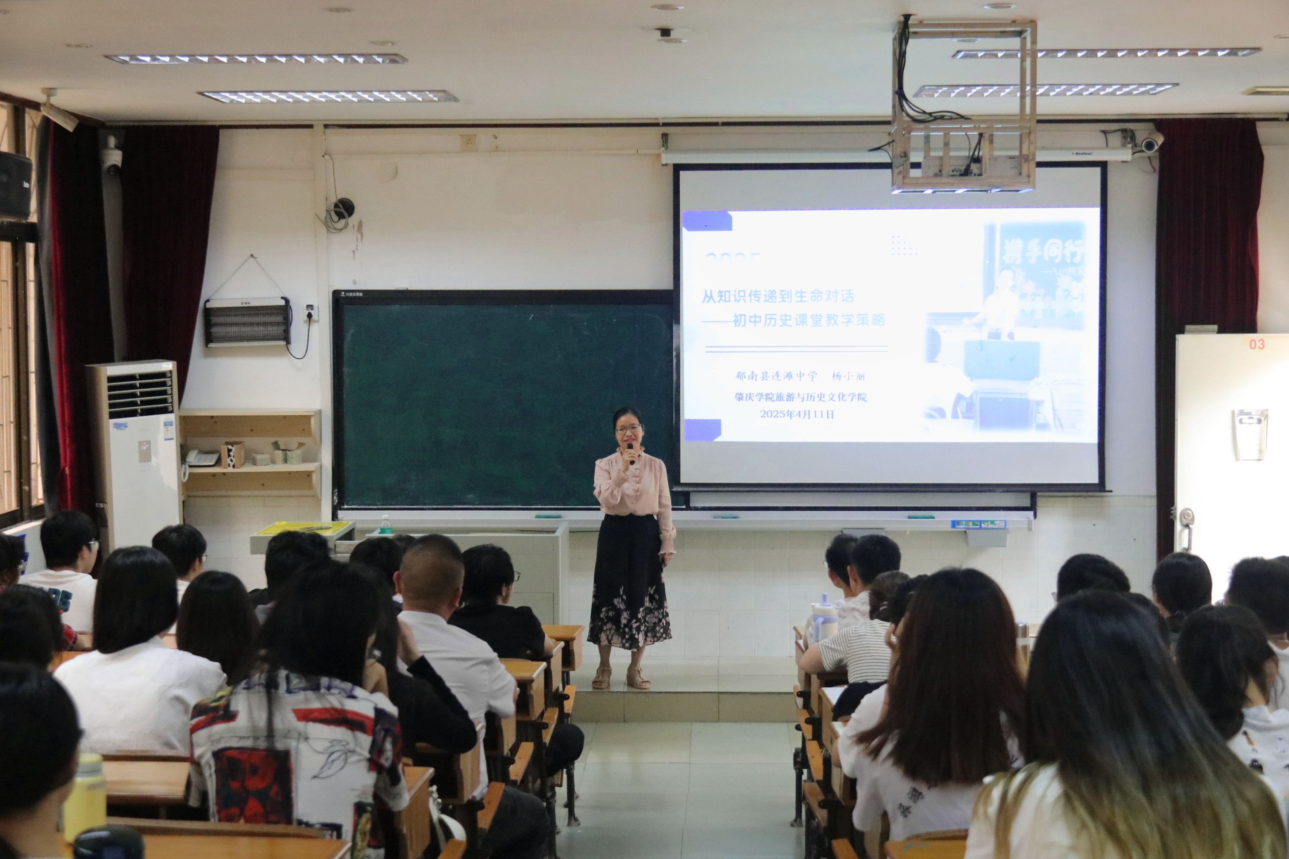 4月11日,云浮市郁南县连滩中学的初中历史高级教师杨小丽莅临公司,以《从知识传递到生命对话——初中历史课堂教学策略》为主题,为24级历史师范生举办了一场围绕职业发展的职业咨询辅导会。