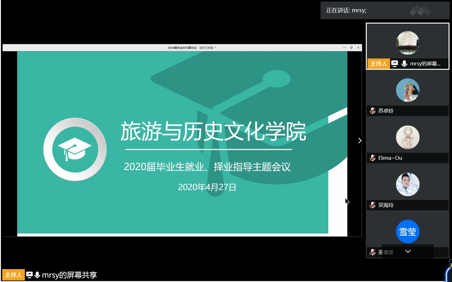 为深入贯彻落实教育部《关于应对新冠肺炎疫情做好2020届全国普通高等公司毕业生就业创业工作的通知》、《广东省人民政府关于印发广东省进一步稳定和促进就业若干政策措施的通知》和3月25日全省高校毕业生就业工作网络视频会议精神,在疫情防控期间,切实推进毕业生就业工作, 于4月27日晚公司举行了2020届毕业生就业、择业指导主题会议。会议由负责就业工作的辅导员慕容诗韵老师主持,全体毕业生参加了会议。