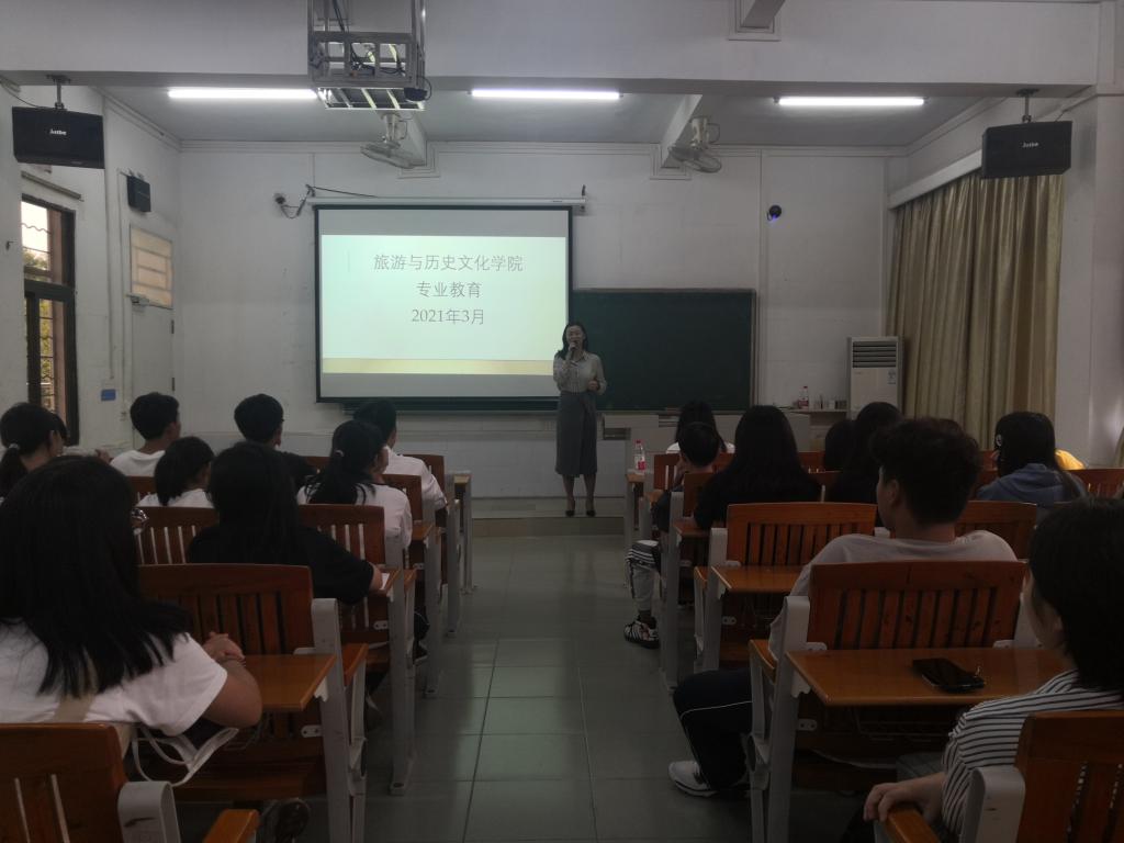 为进一步提升2020级同学的专业归属感,加强专业认知, 进一步扎实做好专业课程学习。3月31日下午,2005届旅游管理专业优秀毕业生张昱做客文旅讲坛,面向2020级同学分享从业心得,郭栩东副经理主持。