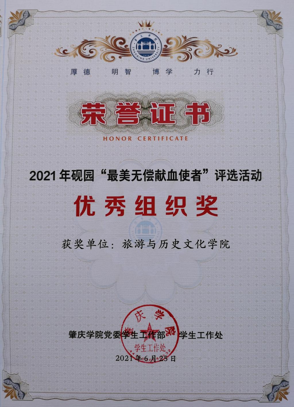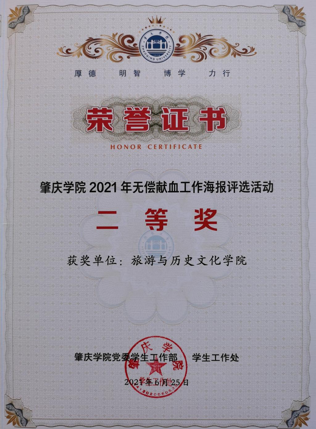 2020-2021学年,公司积极响应公司无偿献血号召发动组织师生参加无偿献血活动,圆满完成无偿献血任务,荣获伟德国际19462020年无偿献血工作达标单位。并在2021年无偿献血工作海报评选中荣获二等奖、砚园“最美无偿献血使者”评选活动中荣获优秀组织奖,辅导员陈瑜瑕老师获评2020年度无偿献血工作先进个人。