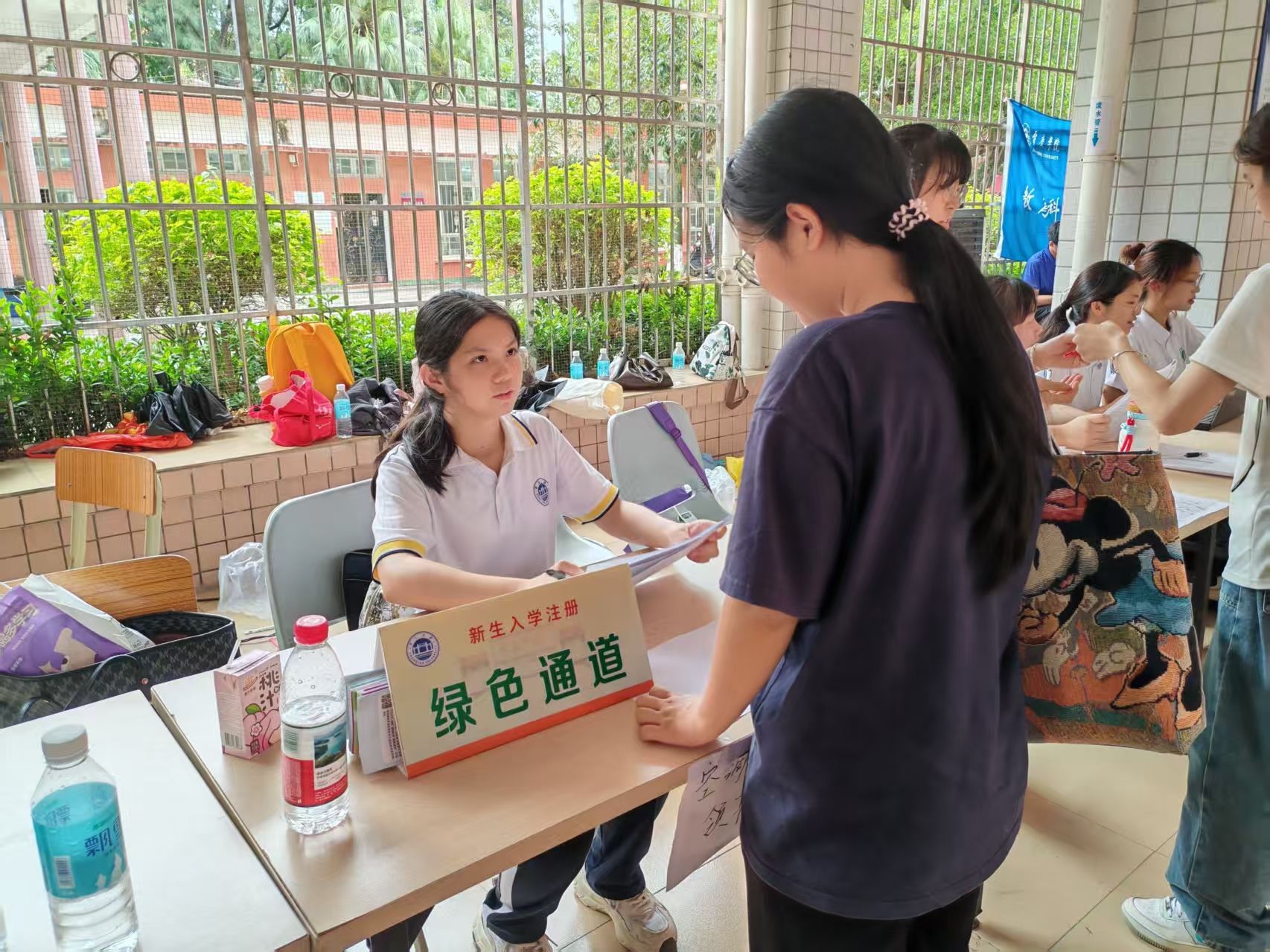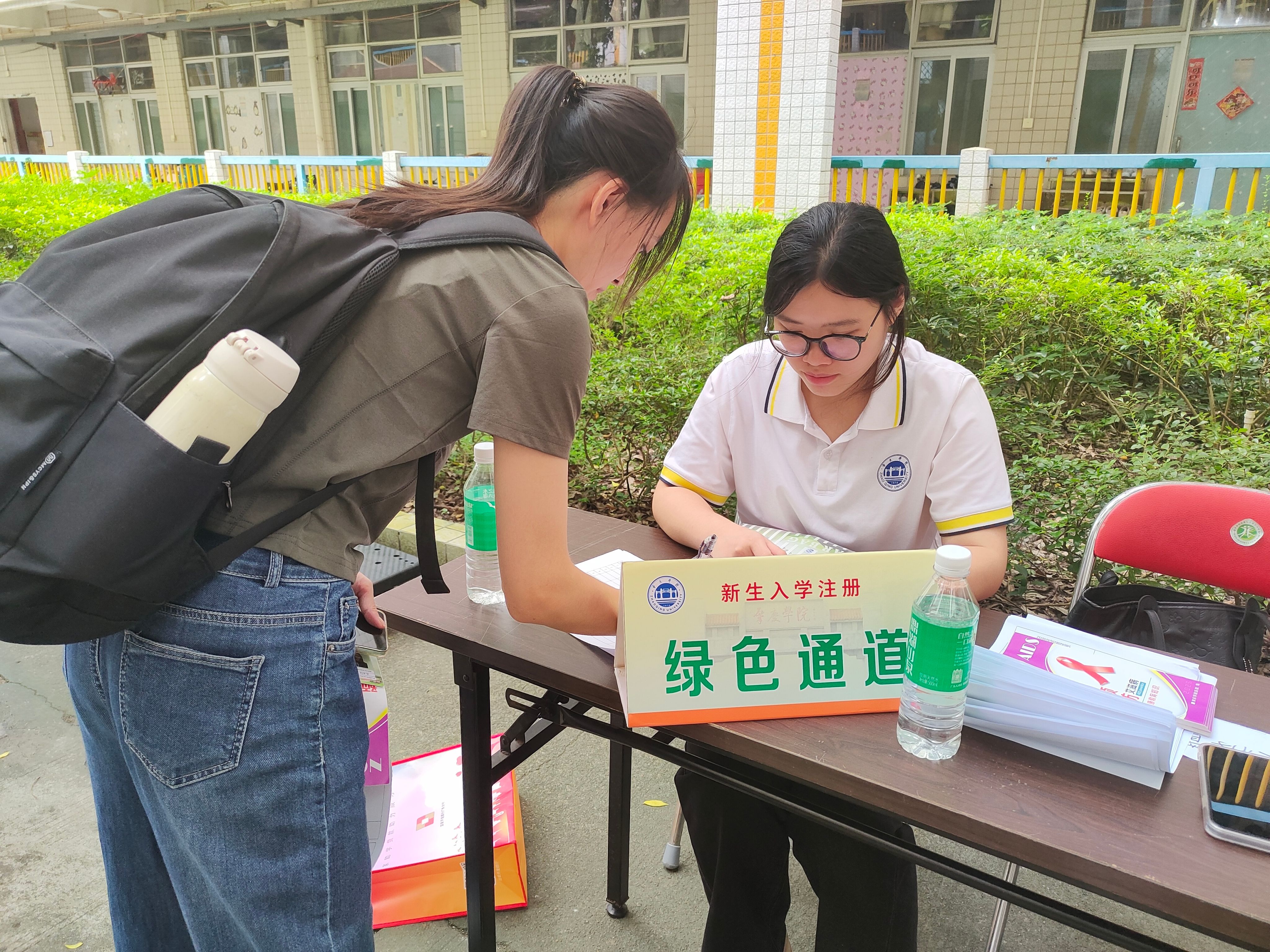 夏日高温下,迎新志愿者们始终保持热情饱满的状态,以高度负责的态度引导新生办理报到手续。在繁忙的报到现场,一块白底绿字的 “绿色通道” 标识牌格外显眼,成为现场的独特亮点。公司在此专门组建资助工作小组,不仅主动向新生普及公司奖助政策,耐心解答各类资助疑问,细致记录家庭经济困难员工的基础信息,确保资助服务全覆盖。